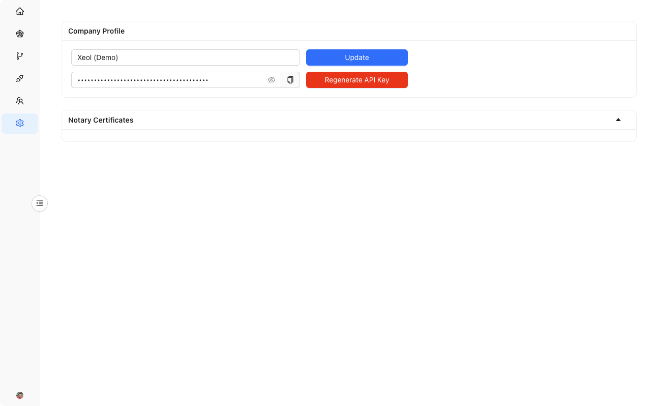 Sign up here. You should then receive an email invite to the Xeol dashboard.Step 2: Generate API key