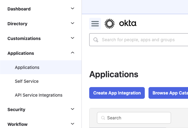 Login to your Okta dashboard and under applications clickCreate App Integration